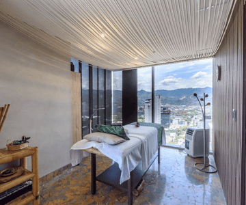 Ihre Unterkunft, das stilvolle Diez Hotel Categoría Colombia, liegt im beliebten Viertel El Poblado. Mit seiner modernen Architektur, inspiriert von der kolumbianischen Kultur, bietet es komfortable Zimmer mit Blick auf die Stadt und die umliegenden Berge. Auf der Dachterrasse erwarten Sie Spa-Bereiche mit Sauna, Whirlpool und Dampfbad – ein idealer Ort, um nach der Ankunft zu entspannen.